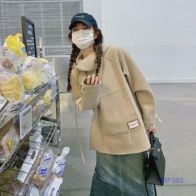 新作 パーカー レディース プルオーバー フード付き 長袖 ハイネック アウター スリット ゆったり カジュアル 春秋 通勤 韓国風 上品 おしゃれ