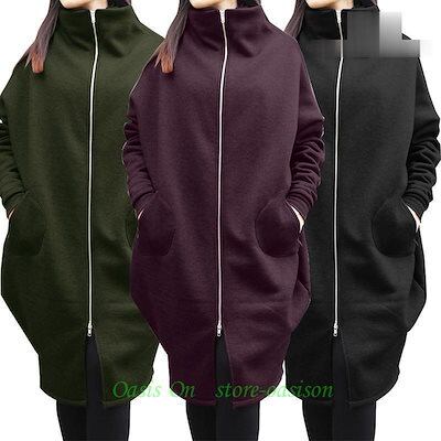 人気沸騰 新品 パーカー レディース 裏ボア 裏起毛 ジップ スウェット アウター 防寒 スタンドカラー トップス ロング丈 秋 冬 あったか ゆったり カジュアル