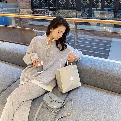 ニットセットアップ レディース 秋冬 セットアップ ニット パンツ 大きいサイズ ロングパンツ セーター プルオーバー ワイドパンツ大人可愛い 可愛い かわいい おしゃれ 普段使い ゆったり 無地 | HUG-L