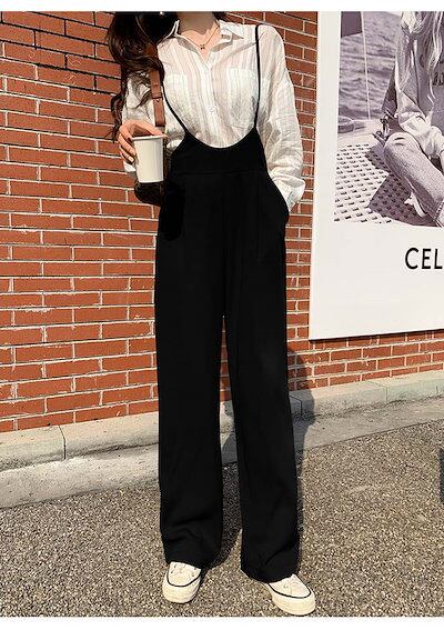 サロペット パンツ レディース オールインワン ワイドパンツ 春 夏 秋 きれいめ 着痩せ 大きいサイズ カジュアル おしゃれ 体型カバー ゆったり 女性 お呼ばれ 可愛い 無地 おしゃれ カジュア | HUG-L