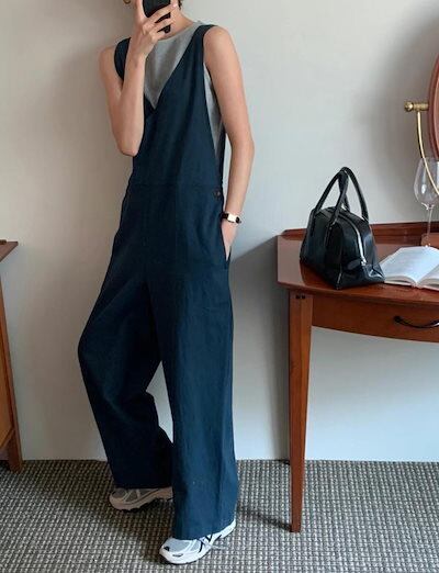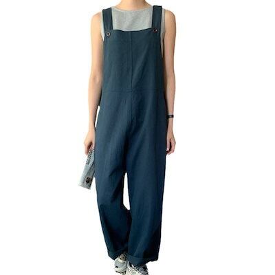 春夏 美脚 Vネック オールインワン 美シルエット レディース サロペット ワイドパンツ きれいめ エレガント 着痩せ 体型カバー シンプル かわいい 無地 ゆったり おしゃれ カジュアル コーデ ス | HUG-L