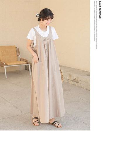 オールインワン レディース サロペット ワイドパンツ 綿麻 春 秋 ロング丈 ゆるカジ ゆったり 体型カバー 女性 お呼ばれ 可愛い 無地 大きいサイズ 体型カバー おしゃれ ゆったり カジュアル ナ | HUG-L