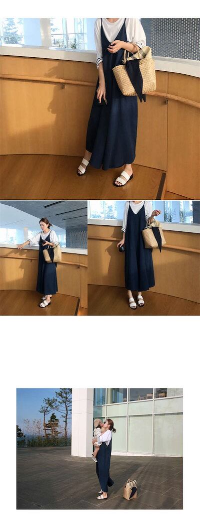 オールインワン レディース サロペット ワイドパンツ リネン 綿麻 春 秋 マタニティ きれいめ 9分丈 着痩せ 大きいサイズ カジュアル おしゃれ 体型カバー ゆったり 女性 お呼ばれ 可愛い 無地 | HUG-L