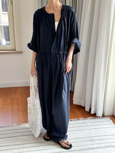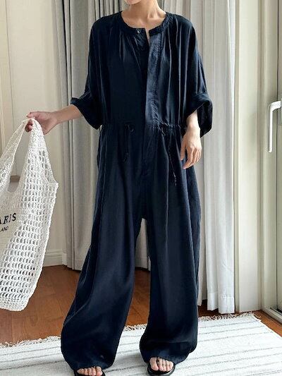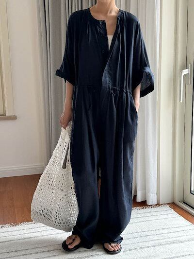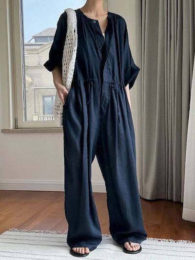 オールインワン レディース 7分袖 ワイドパンツ ロング丈 綿麻 春 夏 秋 ゆったり コットン リネン 体型カバー 女性 お呼ばれ 可愛い 大きいサイズ おしゃれ ゆるっと カジュアル ナチュラル | HUG-L
