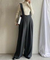 サロペット パンツ オールインワン レディース パンツ ワイドパンツ 春 秋 重ね着 レイヤード風 きれいめ 着痩せ カジュアル おしゃれ 体型カバー ゆったり 女性 お呼ばれ 可愛い 無地 おしゃれ | HUG-L