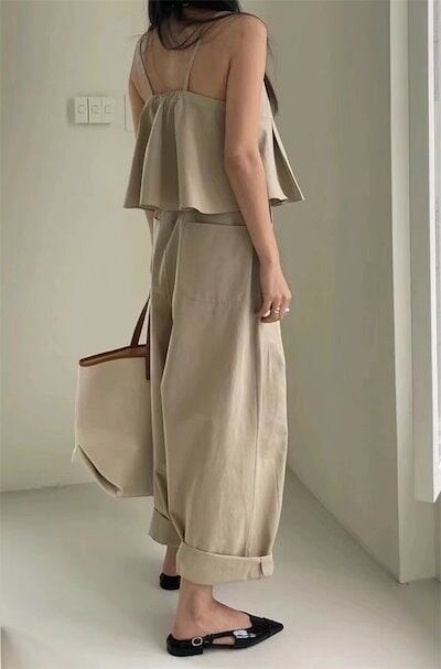 セットアップ レディース ペプラムキャミソール ワイドパンツ ハイウエスト キャミソール トップス ボトムス ロングパンツ 大人可愛い お出かけ 旅行 デート 女子会 人気 上品 2点セット 涼しい | HUG-L