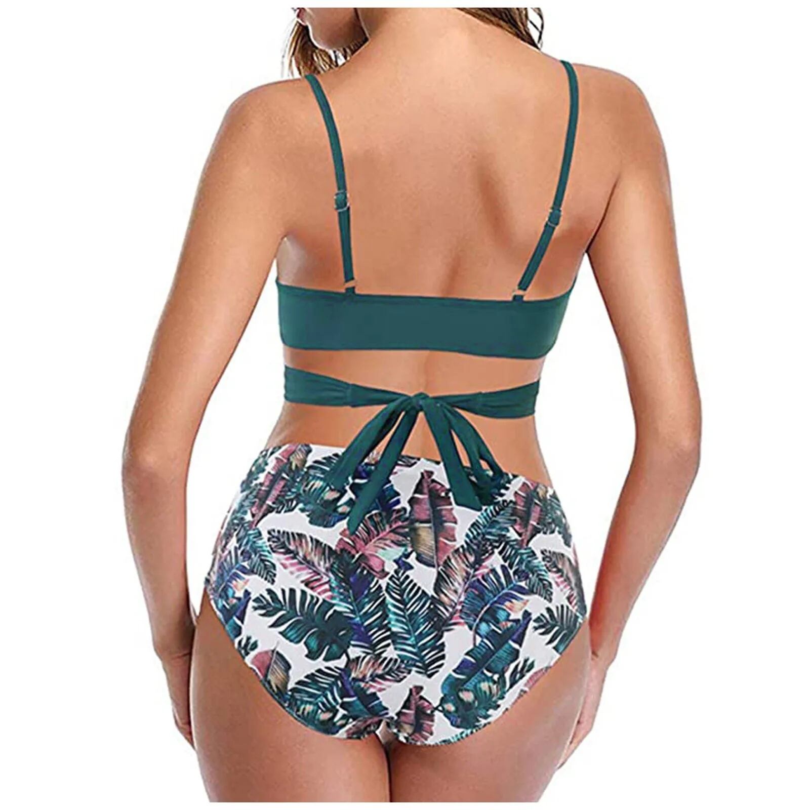 女性用ヒョウ柄ビキニセット,セクシーな腕立て伏せ水着,ハイウエスト水着,単色ホルターネックビキニセット ビキニ Tシャツ T240619004007_02