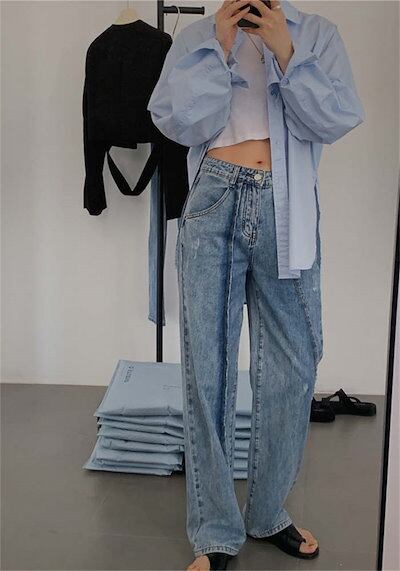 デニムパンツ レディース パンツ ハイウエスト ロングパンツ ボトムス ストレート ワイド ロング丈 春 夏 秋 ジーンズ アウトドア ストレッチ ストレートデニム お出かけ デート 美脚 体型カバー | HUG-L