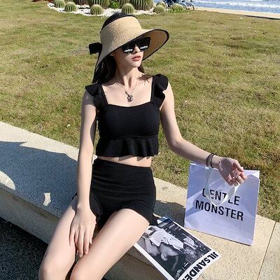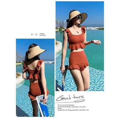 水着 レディース ビキニ ビスチェ風 ハイウエスト 2点セット 人気 フレア フリル 20代 30代 40代 女性用