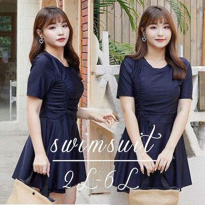 水着 レディース ワンピース水着 セットアップ ショートパンツ ぽっちゃり 袖あり 半袖 露出控えめ 体型カバー お腹カバー お尻カバー 2点セット ブラック 無地 シンプル 可愛い フレアスカート