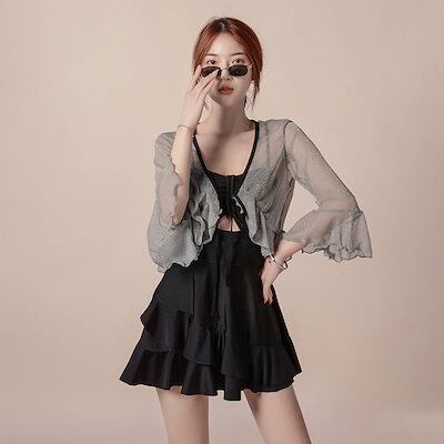 温泉 水着+長袖ブラウス 2点セット レディース オールインワン スリム ins かわいい 体型カバー