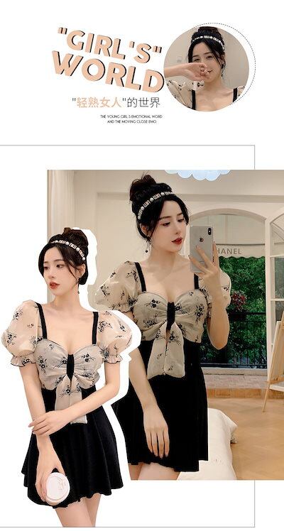 水着セット 気質 コンビネゾン 保守 水着 レディース 蝶結び キュート スリム見え セクシー 半袖 チェストパッド付き 韓国ファッション