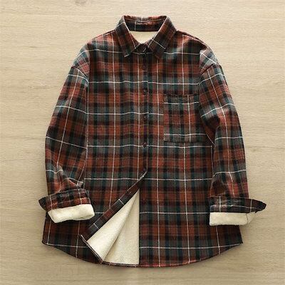 シャツ レディース 裏起毛 春 秋 冬 ライトアウター アウター 長袖 チェックシャツ 折り襟 オフィス トップス 綿 長袖 裏ボア ジャケット フォーマル チェック柄 厚手 着回し 大人 ブラウス | HUG-L