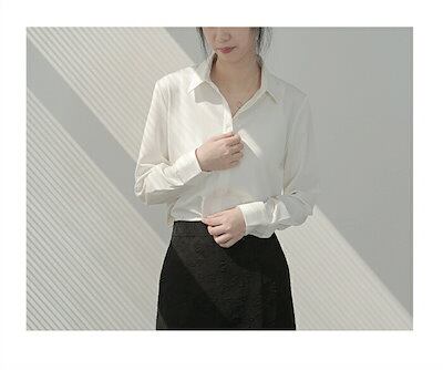 ブラウス レディース フォーマル 春 秋 長袖 折り襟 オフィス シャツ プルオーバー スーツ インナー トップス セレモニー 大人 カジュアル きれいめ おしゃれ 可愛い フェミニン 無地 ビジネス | HUG-L