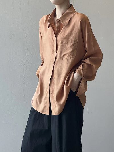 ブラウス シャツ レディース 長袖 トップス 羽織 重ね着 レイヤード ドロップショルダー お尻が隠れる 無地 襟 Vネック チュニック 大きいサイズ 体型カバー おしゃれ カジュアル ナチュラル | HUG-L