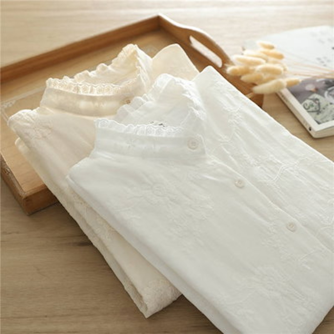 フリル襟 シャツ ブラウス レディース 長袖 秋 冬 春 花柄 刺繍 レース シャツブラウス 長袖シャツ トップス 大きいサイズ コットン フォーマル カジュアル ナチュラル 通勤 オフィス ビジネ | HUG-L