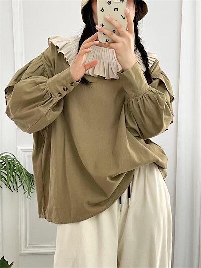 シャツ ブラウス ビッグカラー 襟フリル フリルブラウス 長袖 袖フリル シャツブラウス レディース トップス 春 秋 大人 可愛い ファッション おしゃれ きれいめ プルオーバー ゆったり 体型カバ | HUG-L