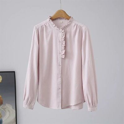 フリル襟 シャツ ブラウス 長袖 立ち襟 シャツブラウス レディース トップス 羽織り 春 秋 フォーマル 大人 可愛い ファッション おしゃれ きれいめ ゆったり 重ね着 体型カバー オフィス OL | HUG-L