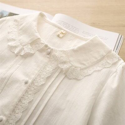 レース襟 シャツ レディース 長袖シャツ 綿 柔らかい シャツブラウス トップス 丸襟 レース 春 秋 冬 シンプル 大人 おしゃれ ファッション 体型カバー 大人可愛い ピンタック 森ガール 重ね着 | HUG-L