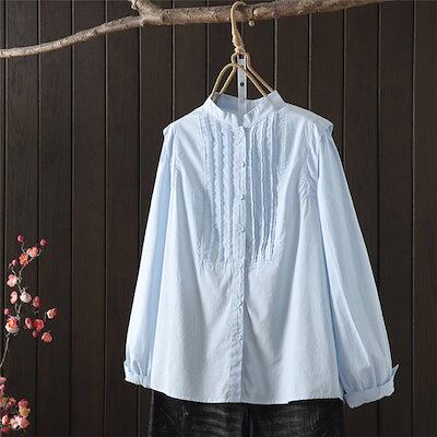 スタンドカラー シャツ ブラウス レディース 長袖 立ち襟 ピンタック シャツブラウス トップス 羽織り 春 秋 冬 フォーマル 大人 ファッション おしゃれ きれいめ ゆったり 重ね着 インナー オ | HUG-L