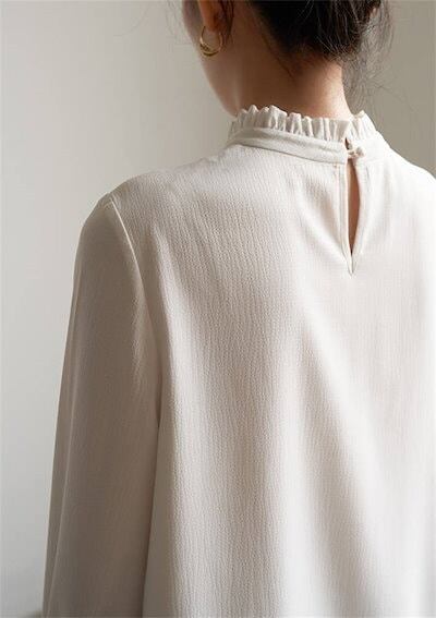 フリル衿 ブラウス レディース スーツブラウス 長袖 レディースブラウス 無地 シャツブラウス シフォン 七五三 ママ スーツインナー 入学式 卒業式 インナー スタンドカラー 立ち襟 大人 お洒落 | HUG-L