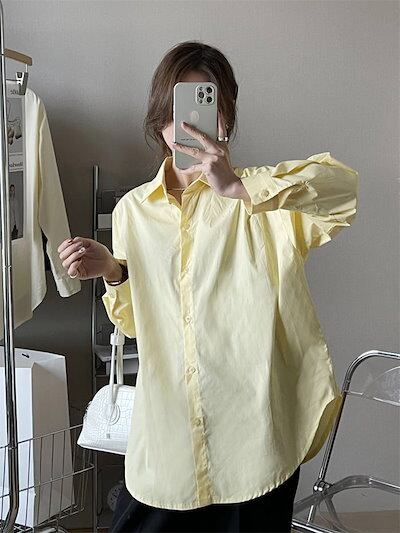 シャツ レディース 長袖 無地 カジュアル シャツブラウス 春 秋 長袖シャツ 無地トップス 前開き 春秋シャツ 無地シャツ トップス 春秋 定番 オリジナル シンプル ブラウス 折り襟 ゆったり 清 | HUG-L