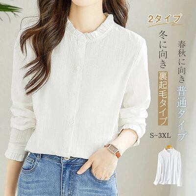 フリル襟 シャツ ブラウス レディース 長袖 秋 冬 春 裏起毛 シャツブラウス 長袖シャツ トップス スーツ インナー 大きいサイズ フォーマル カジュアル ナチュラル 通勤 オフィス ビジネス O | HUG-L