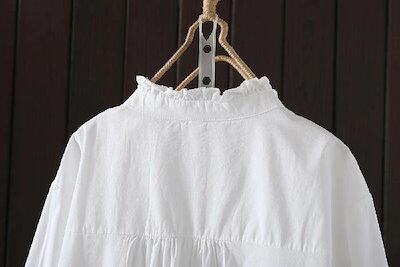 シャツ ブラウス レディース フリル襟 シャツ 綿 コットン ブラウス 長袖 トップス 羽織り カジュアル 無地 ブラウス 大きいサイズ 体型カバー ゆったり 通勤 春 秋 夏 シンプル 着回し 柔 | HUG-L