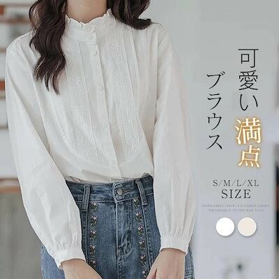 ブラウス レディース シャツ 長袖 フリル襟 シャツブラウス 白シャツ スーツインナー トップス ブラウスチュニック かわいい きれいめ カジュアル オフィス 通勤 ゆったり ガーリー おしゃれ ベー | HUG-L