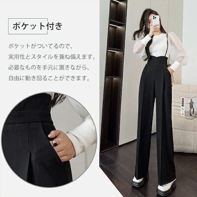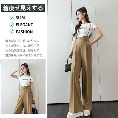 サロペット パンツ レディース オーバーオール オールインワン ロング丈 ズボン ワイド パンツ きれいめ 着痩せ ゆったり 体型カバー シンプル かわいい 美脚 無地 おしゃれ カジュアル コーデ | HUG-L