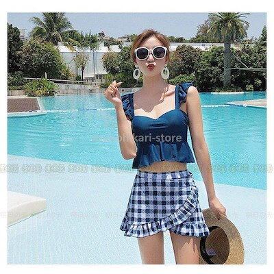 水着2点セット レディース 体型カバー水着 セパレート ドット柄スカート ビキニ 小胸バンドゥ 40代 オシャレ韓国風 可愛いスイムウェア ママ水着 学生 温泉
