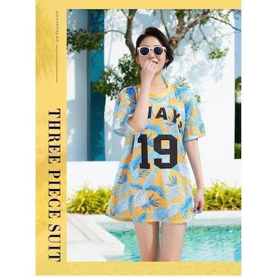 水着レディースビキニ3点セット小胸バスト盛れるセパレートパット付き体型カバー水着韓国風大きいサイズスイムウェア温泉ママ水着