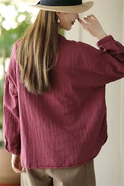 シャツ ブラウス レディース ダブルガーゼ トップス ガーゼシャツ 長袖 Vネック チュニック 無地 コットン100% 羽織り 綿 春 秋 冬 ガーゼ ベーシック フォーマル 体型カバー OL 柔らか | HUG-L