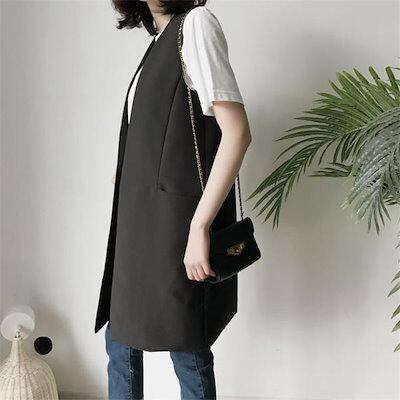 【新作入荷】ジレ ベスト レディース ロング丈 春夏 トップス ロングコート ノースリーブ ロングジレ 無地 秋 羽織り 大人 オフィス 通勤 OL