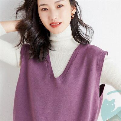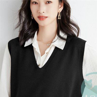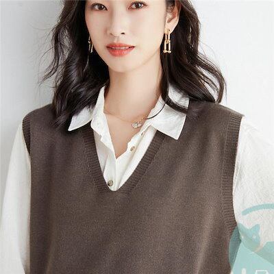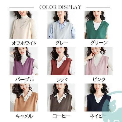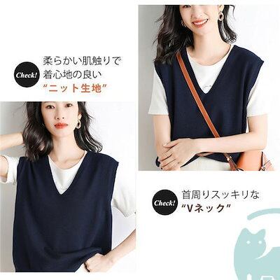【出荷が早い】ニット ベスト セーター vネック トップス レイヤード レディース 通勤 ノースリープ 春 秋 カジュアル 韓国風 ゆったり 重ね着 無地 上品