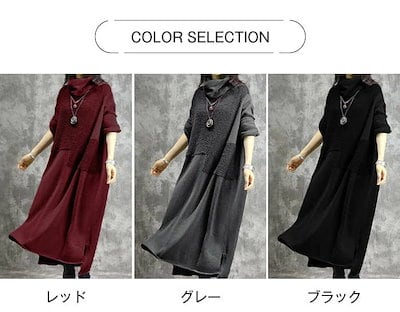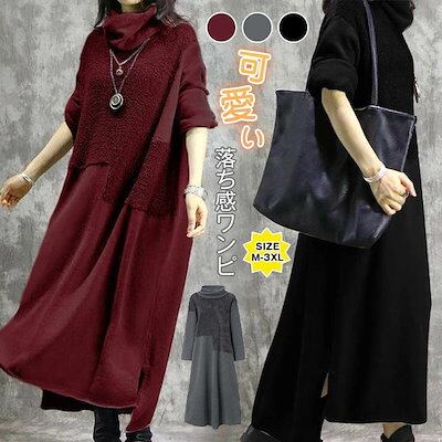 ロングワンピース ワンピース レディース ワンピ 長袖 マキシ丈 マキシワンピ 大きいサイズ 体型カバー ハイネック ゆったり カジュアル 大人 着痩せ 秋 冬 秋冬新作 可愛い オシャレ エレ | HUG-L