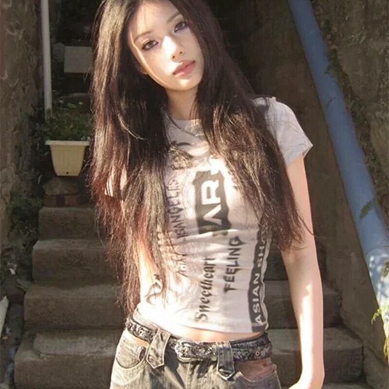 アメリカンヴィンテージレターグラフィック Tシャツカーキスリム夏ホットセクシーなボディコンクロップトップス Y2k グランジパンクストリート サマー 夏物 ビンテージ hub0727e21112994131 | HUG-L