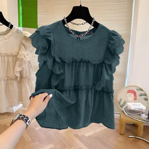 Zanzea-レディースサマーキャップスリーブブラウス、フリルステッチトップ、カジュアルラウンドネックチュニック、単色Tシャツ、ホリデーファッション、2021