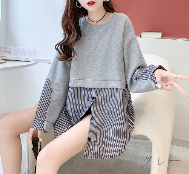 全2色 スウェット トレーナー フェイク 切り替え バイカラー 体型カバー 着痩せ カジュアル