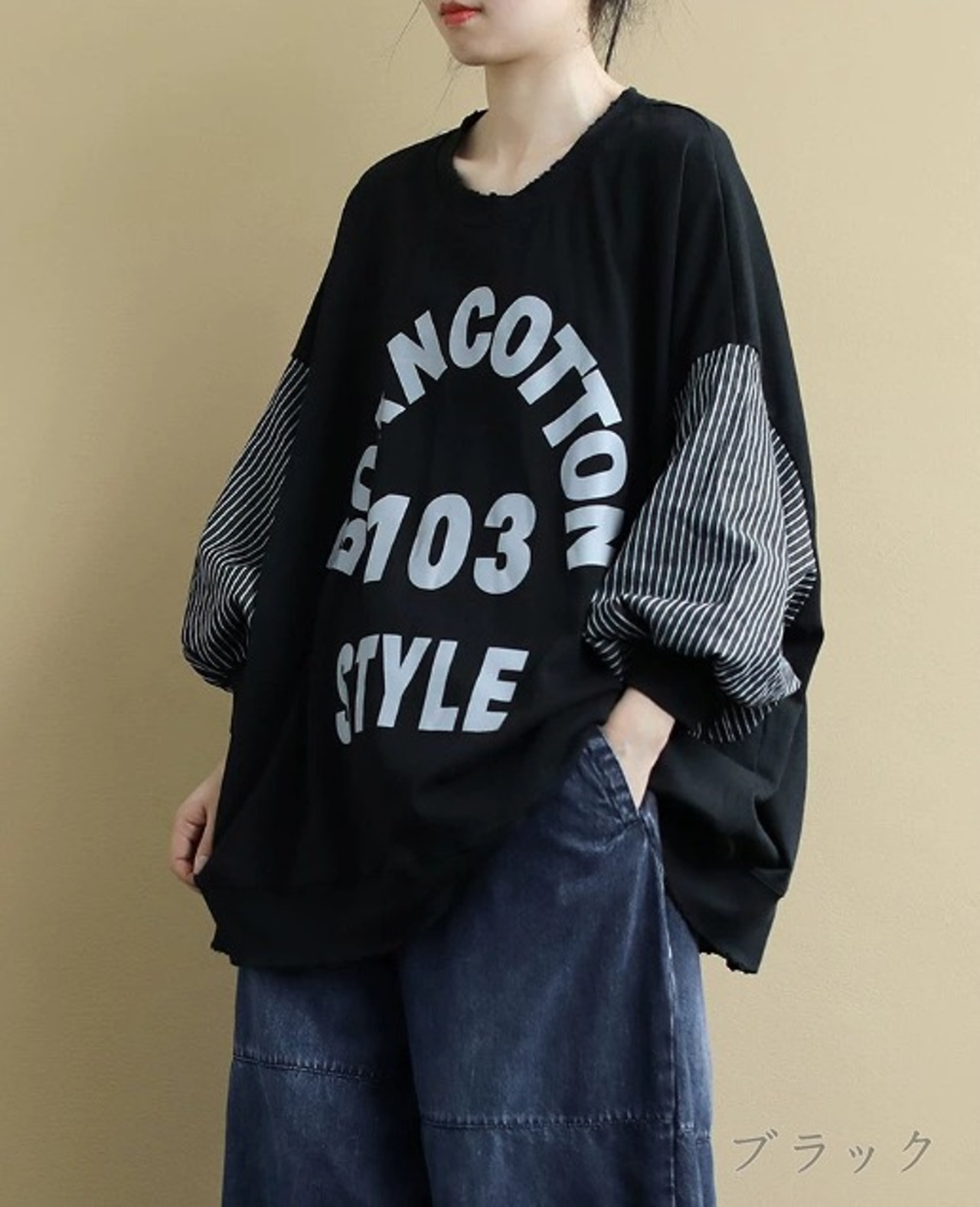 全2色 スウェット トレーナー プリント 切り替え バイカラー 体型カバー 着痩せ シンプル カジュアル