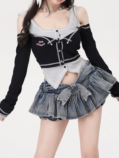 純欲風甘辛ins蝶ネクタイカウボーイ半身スカート女性夏新高腰痩せスカート防光ズボンスカート Aラインスカート 韓国ファッション Y2k 地雷系 脚魅せミニスカート