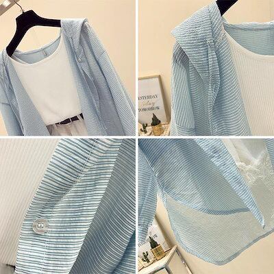 シアーシャツ UVカット夏軽薄 uvカットパーカー ストライプ 日焼け防止 カーディガン紫外線対策 接触冷感 トップス体型カバー 薄手 秋 アウターシャツ レディース