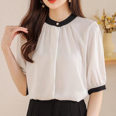 シアーシャツ 【上品】夏 半袖シャツ 気質百掛け シフォンブラウス ゆったり tシャツ 半袖 レディース 韓国ファッション 通勤 大きいサイズTシャツワイシャツ