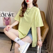 Tシャツカットソー 設計感 半袖 tシャツ レディース 夏 着痩せ 百掛けトップス 韓国ファッション 裾スリットデザイン Tシャツ 日系 シンプル ティーシャツ