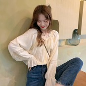 シアーシャツ 秋百掛け 無地 ブラウス レディース 韓国ファッション ラッフル 長袖 トップス シャツ インナー レトロ おしゃれ Tシャツ
