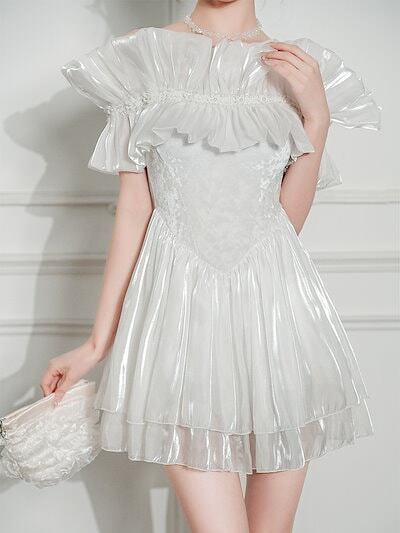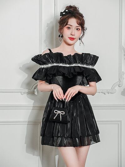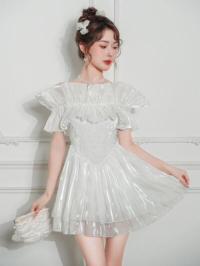 可愛い水着オールインワンレディース水着ワンピース木耳元の肩の水着の女性新型韓国ins風小清新なお腹を隠して痩せて見えるスカート式水着