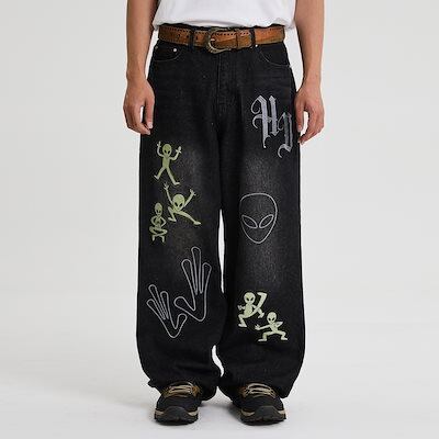 HOODHOODHD Alien Multi Embroidery Denim Pants BLACK