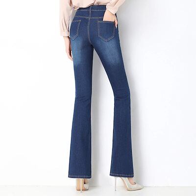 ハイウエストジーンズレディース新作刺繍入りマイクロフレアストレッチワイドレッグスリムスリムクロップド