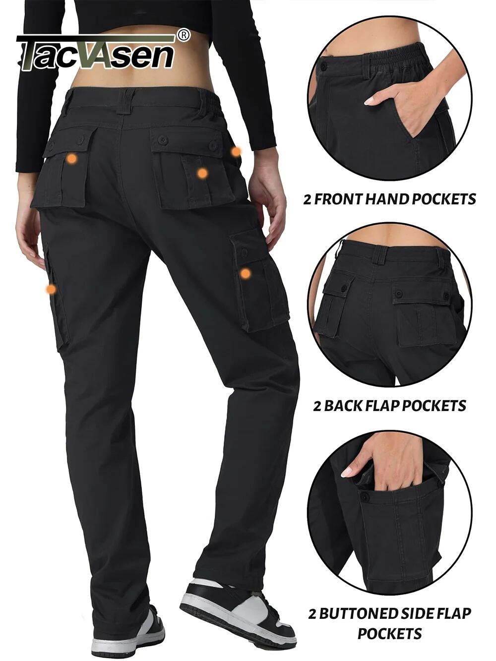 "Tasven-女性用コットンカーゴパンツ,伸縮性ウエスト,アウトドア,ハイキング,仕事用,ヴィンテージy2kパンツ,バギーストリートウェア ボトム ワイドレッグ バギーパンツ T240831223141_01 | HUG-L
