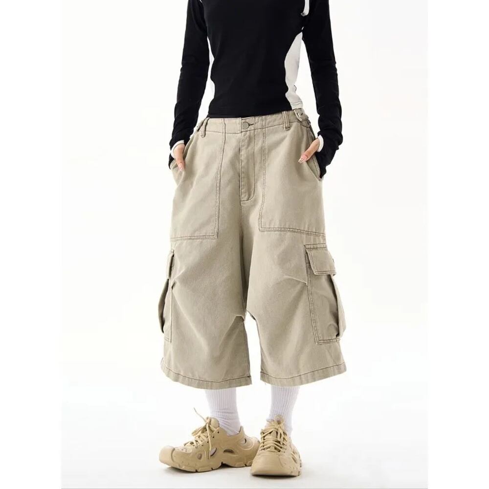Deeptown-女性のヴィンテージカーゴパンツ,特大の原宿ジョギングパンツ,バギー,韓国のファッションカプリパンツ,y2kストリートウェア,夏 ボトム ワイドレッグ バギーパンツ T240831224020_02 | HUG-L